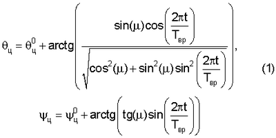 Величины , , , Т в формулах (1) являются свободными параметрами, выбором которых обеспечивается формирование спиралевидных траекторий спуска с заданной амплитудой и с заданным числом витков спирали на интервале спуска, в том числе спиралевидных навесных и настильных траекторий, спиралевидных траекторий, подлетных к цели с заданного направления и др. Изменение параметров , , , Т в процессе спуска по заранее выбранным программам позволяет сформировать спиралевидные траектории спуска более сложных конфигураций, в том числе с изменением максимальной амплитуды и числа витков спирали, с изменением направления вращения по спирали и др.