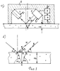 Остро направленный луч от источника света 1 падает на наружную поверхность листа стекла и, частично отражаясь от этой поверхности – линия H, фиг.1, попадает через объектив в фотоэлектрический преобразователь 2, другая часть луча преломляется, проходит через лист стекла, отражается от его внутренней поверхности и попадает – линия B, также через объектив в преобразователь. Изображения H и B обоих лучей (фиг.2а) преобразуются в электрические сигналы (фиг.2б).