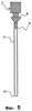 b) оптический пирометр, установленный на верхней части установочной втулки и приспособленный для измерения теплового излучения, испускаемого зоной измерения, расположенной внутри внутренней полости установочной втулки и ниже верхнего уровня ванны расплавленного материала. Это устройство частично погружено в ванну расплавленного материала. Принцип способа измерения с использованием этого устройства основан на том факте, что тепловое излучение, испускаемое огнеупорным материалом, из которого изготовлена установочная втулка, связано с температурой ванны расплавленного материала. Огнеупорная установочная втулка действует в качестве экрана, который термически защищает оптический пирометр, а также позволяет производить измерения в зоне измерения, расположенной под изолирующим слоем шлака, гораздо ниже верхнего уровня ванны расплавленного материала.