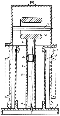 Изоляция между металлическим корпусом 1 и дополнительной обкладкой 3, соединенной с корпусом 1 и металлической трубой 2, а также между вертикальной опорной трубой, состоящей из деталей 7, 8, 9, и металлическим корпусом 1, выполнена газовой или чисто масляной и не содержит в себе элементов твердой изоляции, что обеспечивает в зонах максимальной напряженности электростатического поля получение высокой электрической прочности изоляции.