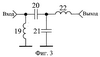 Макет полосового усилителя мощности, принципиальная схема которого приведена на фиг.5, имел следующие технические характеристики: полоса рабочих частот – 200…230 МГц; коэффициент усиления – 10,5 дБ; максимальное значение выходной мощности – 40 Вт; мощность, потребляемая от источника питания, при максимальном значении выходной мощности – 70 Вт; коэффициент полезного действия в режиме максимальной выходной мощности – 54%; мощность входного сигнала при максимальном значении выходной мощности – 3,6 Вт.