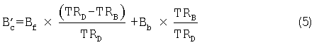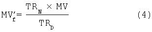 К тому же, как следует из фиг.4, в случае получения вектора движения вперед в режиме прямого предсказания в соответствии с настоящим изобретением блок с компенсацией движения Вf находится в опорном кадре (Р4), ближайшем к текущему В-кадру, а блоке компенсацией движения Вb находится в последующем опорном кадре для режима прямого предсказания (Р7). Поэтому интерполяционное предсказание осуществляют по уравнению (6). В данном случае, TRD – это временной интервал между предыдущим опорным кадром для режима прямого предсказания (Р1) и последующим опорным кадром для режима прямого предсказания (Р7), TRB – временной интервал между предыдущим опорным кадром для режима прямого предсказания (Р1) и текущим В-кадром, a TRN – временной интервал между опорным кадром (Р4), ближайшим к текущему В-кадру, и текущим В-кадром.