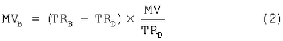 Следовательно, уравнения (5) и (6) могут быть представлены в виде уравнения (7) с использованием значений отсчета порядка кадров, которые отображают информацию о порядке соответствующих кадров. В данном случае Тc – значение отсчета порядка кадров, т.е. информация о порядке отображения, закрепленная за текущим В-кадром; Tf – значение отсчета порядка кадров, т.е. информация о порядке отображения, закрепленная за предыдущим опорным кадром для режима прямого предсказания, или значение порядкового отсчета кадров, т.е. информация о порядке отображения, закрепленная за опорным кадром, ближайшим к В-кадру, если вектор движения вперед рассчитывается по уравнению (4), а Тb – значение отсчета порядка кадров, т.е. информация о порядке отображения, закрепленная за последующим опорным кадром для режима прямого предсказания.