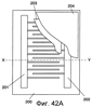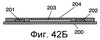 На Фиг. 42A и Фиг. 42Б показана конструкция обычных нагревательных элементов с положительным температурным коэффициентом сопротивления (ПТКС). Обычный нагревательный элемент с ПТКС содержит два гребенчатых электрода 201, 202 (ниже именуемых электродами) и резистор 203 с ПТКС (ниже именуемый резистором), расположенный на подложке 200 в том месте, в котором происходит подача электрической энергии из электродов. Подложка 200 состоит из совершенно негибкого или имеющего плохую гибкость материала, такого как различные виды керамики, изолированная металлическая пластина или пленка из сложного полиэфира. Электроды 201, 202 получены путем печати и высушивания проводящей пасты. Резистор 203 получен путем печати и высушивания композитной печатной краски с ПТКС (ниже именуемой печатной краской с ПТКС). Подложка 200 и покровный материал 204, изготовленный из того же самого материала, что и подложка 200, покрывают и предохраняют электроды 201, 202 и резистор 203 с ПТКС. На Фиг. 42A показаны с частичным вырывом резистор 203 и покровный материал 204.