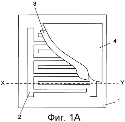 Фиг. 1Б представляет собой вид в поперечном разрезе по линии X-Y нагревательного элемента с ПТКС согласно Фиг. 1A.
