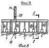 Изготовленные секции 2 с установленными на них механизмами 18 для выдвижения и вдавливания в дно водоема свай 19, с помощью которых осуществляется выравнивание секции на неровном дне и закрепление их на грунте дна, устанавливаются на шарнирные вилы 20, в свою очередь шарнирно укрепленные на понтонах 21, причем в зависимости от грузоподъемности понтонов и веса секции понтоны 21 могут соединяться со вторым рядом понтонов 22 и другими понтонами, если есть в этом необходимость.