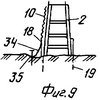 на фиг.8 приведен вид по стрелке В на боковую поверхность морского ограждения, закрепленного на дне водоема,