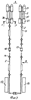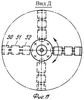 Понтоны 21, 22 крепятся между собой на кронштейнах 23 и с помощью палубы 24, на которую в свою очередь устанавливаются механизмы привода свай в механизмах 18, состоящие из электродвигателя 25, редуктора 26, имеющего вал 27. Кроме того, на понтонах 21 крепятся устройства по узлу Q, обеспечивающие прочное крепление понтонов 21 к секциям 2. Устройство по узлу Q показано на фиг.6.