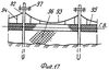 на фиг.16 показан вид сверху на плавучую волновую электростанцию, выполненную в два рядя секций-понтонов и шарнирно связанных между собой.