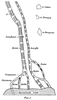 На фиг.16 в плане показана волновая электростанция с двумя параллельными рядами секций понтонов 50 (которых может быть 1-2-3 и более), соединенных между собой на шарнирах 88, представляющих собой поршень и шатун, причем поршень, установленный в направляющих, крепится на борту понтона первого ряда, а шатун противоположным концом шарнирно соединяется с бортом понтона второго ряда, или их соединение между собой производится с помощью гибких связей – тросами.