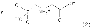 и является относительно нерастворимым в воде (1,16 мас.% при 25°С). По этой причине его обычно приготовляют в виде водорастворимой соли. Можно получить одноосновные, двухосновные и трехосновные соли глифосата. Однако, обычно предпочтительным является получение глифосата и нанесение глифосата на растения в форме одноосновной соли, хотя известными являются также различные готовые препаративные формы двухосновных солей. Наиболее широко используемой солью глифосата является моно(изопропиламмониевая) соль, часто сокращенно называемая IPA. Коммерческие гербициды Monsanto Company, имеющие соль IPA глифосата в качестве активного ингредиента, включают гербициды Roundup®, Roundup® UltraMax, Roundup® Ultra, Roundup® Xtra и Rodeo®. Все гербициды являются готовыми препаративными формами в виде концентратов водных растворов (SL) и их обычно разбавляет в воде потребитель перед нанесением на листья растений. Другая глифосатная соль, которую коммерчески производят в виде готовых препаративных форм как SL, включает триметилсульфониевую соль, часто сокращенно обозначаемую TMS, используемую, например, в гербициде Touchdown® Zeneca (Syngenta). Различные соли глифосата, способы получения солей глифосата, готовые препаративные формы глифосата или его солей и способы использования глифосата или его солей для уничтожения или борьбы с сорняками и другими растениями описаны в патенте США №4507250 на имя Bakel, патенте США №4481026 на имя Prisbylla, патенте США №4405531 на имя Franz, патенте США №4315765 на имя Large, патенте США №4140513 на имя Prill, патенте США №3977860 на имя Franz, патенте США №3853530 на имя Franz и патенте США №3799785 на имя Franz. Вышеупомянутые патенты включены здесь во всей их полноте в качестве ссылки. Среди водорастворимых солей глифосата, известных в литературе, но никогда не использовавшихся до даты регистрации приоритета этого изобретения, можно указать калиевую соль, имеющую структуру, представленную формулой (2):