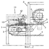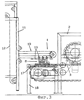 Над загрузочным устройством 8 расположена секция выгрузки 10 расстойного шкафа 11. Расстойный шкаф 11 имеет два проходящих параллельно друг другу бесконечных цепных транспортера 12, на которых подвешены опрокидывающиеся доски 13. На опрокидывающихся досках 13 лежит в один ряд одна возле другой определенное количество тестовых заготовок. Эти тестовые заготовки выполнены из вязкого, пластичного, замешенного с рыхлителем теста. Тестовые заготовки вылеживаются то время, пока тесто выдерживается и тестовые заготовки подходят на опрокидывающихся досках 13 расстойного шкафа 11. Движущиеся опрокидывающиеся доски 13 приходят по истечении времени расстойки в секцию выгрузки 10 расстойного шкафа 11. Там расположенные друг за другом две опрокидывающиеся доски 13 одновременно опрокидываются и лежащие на них в один ряд одна возле другой тестовые заготовки 13а падают вниз из расстойного шкафа и сверху в загрузочное устройство 8, в котором они попадают на посадочное устройство 9.