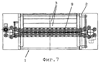 фиг.7 – в схематическом виде сверху секция загрузки хлебопекарной печи с загрузочным устройством согласно изобретению с посадочным устройством тестовых заготовок в его заднем конечном положении;