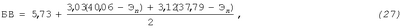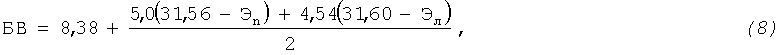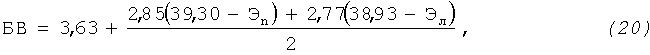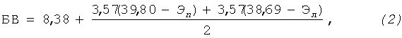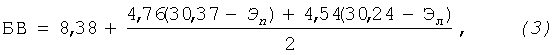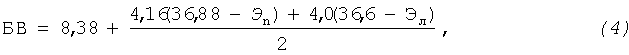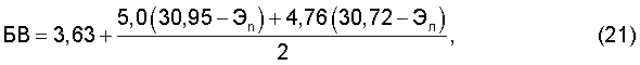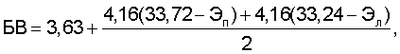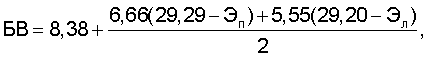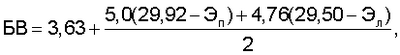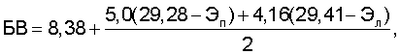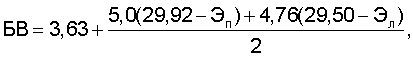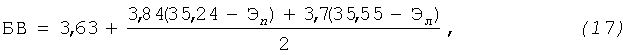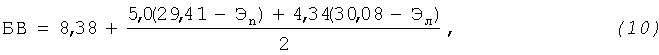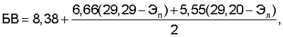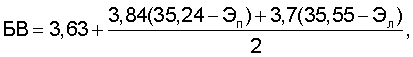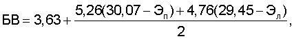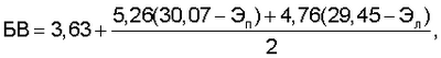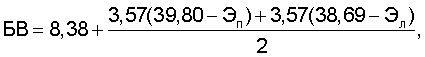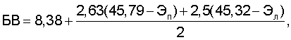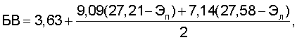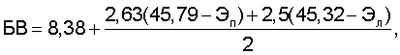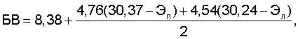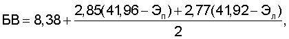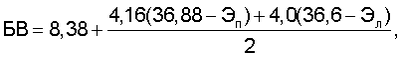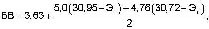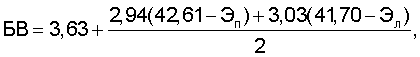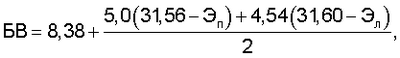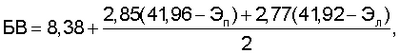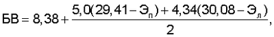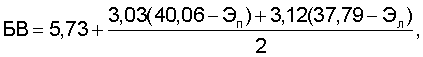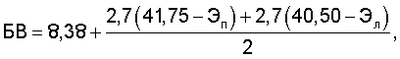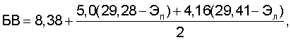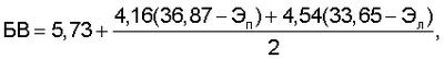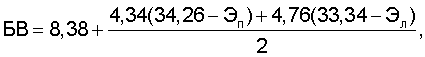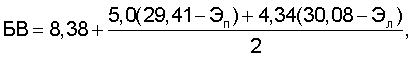 где БВ – значение биологического возраста; КВ0 у мужчин равна 8,38, а у женщин 3,63; Эп0 и Эл0 у мужчин равны 36,33 и 35,91, а у женщин – 34,74 и 34,31;