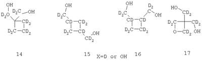 Предпочтительнее, чтобы МР контрастный агент был обогащен 13С в карбонильной группе или в положении четвертичного углерода, чтобы ядра 13С в карбонильной группе или в некоторых четвертичных углеродах могли обычно иметь время релаксации T1 более 2 с, предпочтительно более 5 с, особенно предпочтительно более 30 с. Предпочтительно обогащенные 13С соединения должны быть помечены дейтерием, особенно в положениях, прилегающих к ядру 13С. Предпочтительными обогащенными 13С соединениями являются те, в которых ядро 13С имеет в своем окружении одно или более неактивных при магнитном резонансе ядер, таких как О, S, С, либо двойная или тройная связь.
