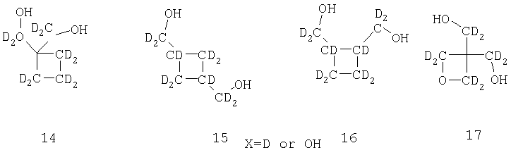 Приведенные ниже соединения 1-17 представляют собой конкретные примеры агентов, пригодных для использования в данном изобретении. Такие агенты являются водорастворимыми, нетоксичными, их легко синтезировать, и они имеют относительно длительные значения T1 в воде, например свыше 60 с.
