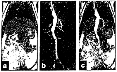 Как в МРА с улучшенным контрастом, так и в “проточном” способе для получения ангиограмм можно применять методику на основе программного обеспечения с использованием проекции максимальной интенсивности. Эти способы дают возможность получить проекции изображения, сходные с ангиограммами, полученными рентгеновским путем. Однако качество изображений, полученных с применением этого способа, требует высокого соотношения контраст – шум, достижение которого может быть затруднительно без вносящих искажение артефактов ввиду недостаточного подавления окружающих тканей.