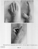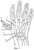 На фиг.1 представлена скиаграмма кисти в прямой проекции до операции. Рудимент пястной кости 1. Вторая пястная кость 2. Запястно-пястный сустав второго пальца 3. Малая многоугольная кость 4. Первый луч кисти 5.