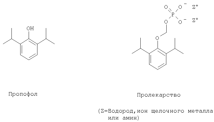 Разработка водорастворимых стабильных пролекарств пропофола, описанных в Патенте США 6204257, выданном Стелла (Stella) и другим, сделала возможным обратиться к этим авторам для решения нерешенных прежде задач с просьбой исследовать фармацевтические преимущества водного пролекарства пропофола при индукции и поддержания седации и анестезии у пациентов. Пролекарства данного изобретения отличаются от пропофола тем, что 1-гидрокси-группа пропофола замещена фосфонооксиметил-эфирной группой: