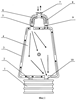 В этой же заявке дополнительно приведена еще одна схема изолирующего дыхательного аппарата, согласно которой он также как и в первом варианте содержит: лицевую часть (мундштук), гофрированную трубку, клапанную коробку с клапанами выдоха и вдоха, емкости выдоха и вдоха, клапан избыточного давления и регенеративный патрон. Для охлаждения дыхательной смеси в клапанной коробке также установлен теплообменник. При выдохе дыхательная смесь по гофрированной трубке через клапан выдоха клапанной коробки поступает в емкость выдоха, размещенную внутри емкости вдоха, а затем в регенеративный патрон. После регенерации дыхательная смесь из регенеративного патрона поступает в емкость вдоха, а затем через клапан вдоха клапанной коробки по гофрированной трубке на вдох. Емкость выдоха размещена внутри емкости вдоха, закреплена на двух ее противоположных стенках и значительно меньше емкости вдоха. Клапан избыточного давления размещен на емкости выдоха и соединен натяжным элементом с противоположной общей стенкой емкости выдоха и емкости вдоха.