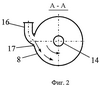 В узком кольцевом зазоре между диффузором 13 и обтекателем 9 происходит возрастание давления и падение вращательной (тангенциальной) составляющей скорости, однако осевая составляющая скорости потока увеличивается, что приводит к повторному возрастанию касательных напряжений, препятствующих слиянию пузырей. Все это способствует образованию в устройстве устойчивой мелкодисперсной пены, позволяющей приготовить строительные пеноматериалы высокой прочности, а также получить стойкую пену для тушения пожаров. Увеличению стойкости пены способствует также наличие в жидком пенообразующем растворе поверхностно-активных веществ, “бронирующих” поверхность пузырей путем создания на границе раздела фаз сольватной оболочки (Фридрихсберг Д.А. Курс коллоидной химии. – Л.: Химия, 1974. – С.291).
