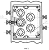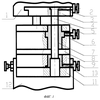 На верхней плите 1 установлены поворотные шестерни пуансонов 2, пуансонодержатели 3 и закрепленные в них пуансоны 4. Крышка 5 предусмотрена для закрывания блока направляющих пуансонов 6. В блоке направляющих пуансонов 6 предусмотрены направляющие пуансонов с поворотными шестернями 7. Ниже блока направляющих пуансонов 6 расположены направляющие ленты 8. В блоке матриц 9 смонтированы матрицы с поворотными шестернями 10. Ниже блока матриц 9 расположен блок с отверстиями для удаления заготовки 11. Блок матриц 9 и блок с отверстиями для удаления заготовки 11 установлены на нижней плите 12.