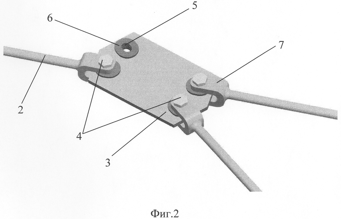 Фиг.2 – элементы соединения стержней в центральной части тележки (один из стержней условно не показан).
