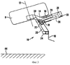 Для опускания колеса из убранного положения в вертикальное положение для дорожного режима находящуюся под давлением гидравлическую жидкость подают в верхний вход 33 цилиндра 34. В соответствии с этим поршень 35 движется в цилиндре вниз, так что шток 36 выдвигается, вызывая движение рычага 20 управления, колеса 8 и цилиндра 34 обратно в их дорожные положения по тому же пути движения, что и при убирании, но в противоположном направлении.