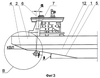 на фиг.4 – узел А на фиг.2 в варианте главной двигательной установки с углом между осью вектора тяги движителя и поворотной осью установки, составляющим 90°+ ;