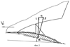Кроме снижения сопротивления движению судна из-за плавного обтекания корпуса при наличии кормового крыльевого профиля, последний заставляет подъемную силу L, действующую на плече, равном длине судна, создавать дифферентующий момент, благодаря которому наклонная поверхность 1 (фиг.1) более эффективно взаимодействует на волнении с потоком жидкости, увеличивая при этом силу F и, следовательно, ее составляющие: силу N и тяговую силу Т, а следовательно, и скорость V судна.