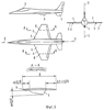 Рассмотрим работу устройства для улучшения характеристик сваливания и штопора самолета. При полете самолета на углах атаки, близких к сваливанию, аэродинамический гребень (гребни) в хвостовой части самолета создает дополнительный путевой момент, способствующий повышению устойчивости самолета по рысканию. Однако он не способствует повышению устойчивости по крену при полете со скольжением и не предотвращает или не затягивает по углу атаки сваливания на крыло, которое может развиться в результате срывных явлений на верхней поверхности крыла или резких движений летчиком педалей (по крену) и руля направления (по рысканию). Рассмотрим работу дополнительных аэродинамических гребней, установленных на нижней поверхности крыла, на примере, когда их два. Эти дополнительные аэродинамические гребни работают как автомат, препятствующие развитию движения по крену. В результате наличия скольжения при установке дополнительных аэродинамических гребней под крылом реализуются два положительных эффекта. Во-первых, при наличии скольжения с наветренных сторон аэродинамических гребней создается подпор, торможение потока (фиг.7). Это приводит к созданию дополнительных, положительных нормальных, примерно равных сил Y1 и Y2 а за счет разности плеч L1=l0+ L1, L2=l0– L2 создается еще прирост стабилизирующего момента крена Mx1=2 LY+, где l0 – расстояние вдоль оси OZ от продольной плоскости симметрии самолета до сечений крыла, в которых установлены дополнительные аэродинамические гребни; Y+ Y1 Y2; L L1 L2 – расстояние вдоль оси OZ от сечений крыла, в которых установлены аэродинамические гребни, до центра приложения сил Y1 и Y2. Во-вторых, при наличии скольжения с подветренных сторон аэродинамических гребней развивается течение с образованием отрывных вихревых жгутов, сходящих с кромок дополнительных аэродинамических гребней. Вихревой жгут Г1, образующийся под наветренной консолью крыла, приближается к плоскости симметрии крыла, а вихревой жгут Г2, образующий под подветренной консолью, наоборот – отдаляется от продольной плоскости симметрии самолета. Над вихревыми жгутами на нижней поверхности крыла реализуется разрежение, приводящее в интеграле к примерно равным дополнительным, отрицательным нормальным силам Y3, Y4, а за счет разности плеч l1=l0– l1, l2=l0+ l2 создается прирост дополнительного стабилизирующего момента крена Mx2=2 lY–, где Y– Y3 Y4; l l1 l2 – расстояние вдоль оси OZ от сечений крыла, в котором установлены дополнительные аэродинамические гребни, до центра приложения сил Y3 и Y4. Таким образом, в результате установки дополнительных аэродинамических гребней на самолет при наличии скольжения будет действовать суммарный дополнительный стабилизирующий момент крена Мx= Мx1+ Мx2, препятствующий сваливанию самолета на крыло и развитию штопора. Для увеличения положительного эффекта может быть установлено несколько пар таких дополнительных аэродинамических гребней.