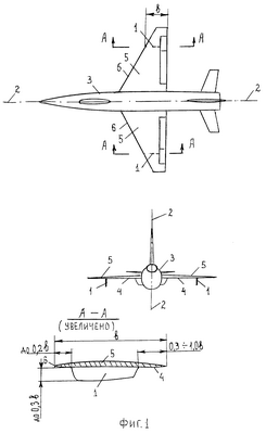 Недостатком такого устройства является то, что оно не предназначено для увеличения поперечной устойчивости, а следовательно, и улучшения характеристики сваливания крыла. Более того, такие гребни на верхней поверхности крыла приводят к ухудшению поперечной устойчивости крыла, а следовательно, к сваливанию на крыло. Это обусловлено, во-первых, тем, что подпор, т.е. торможение потока, реализующее при наличии скольжения с наветренных сторон таких гребней, из-за разности плеч вызывает дестабилизирующий момент крена, что способствует сваливанию на крыло. Во-вторых, при наличии скольжения с подветренных сторон аэродинамических гребней образуются вихревые жгуты, разрежение под которыми вызывает пару дополнительных положительных нормальных сил на верхней поверхности крыла, которые вследствие разности плеч на правой и левой консолях крыла приводят к появлению дестабилизирующего момента крена.