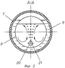 на фиг.2 (вид А-А) – расположение трубчатого коллектора с отверстиями во внутреннем сосуде теплообменника-охладителя, где: