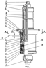 Под действием давления рабочей жидкости опора 7 переместится вверх на величину зазора “Д” и выведет из зацепления свои торцовые шлицы со шлицами гайки 18. Отверстие 5 соединяют со сливной, а отверстие 6 – с нагнетательной магистралями гидросистемы. Шток 2 начнет перемещаться вверх до упора, заставляя вращаться гайку 18 в шарикоподшипниках 17. Отверстие 15 соединится со сливной магистралью гидросистемы, давление рабочей жидкости сбрасывается. Опора 7 под действием пружины 13 переместится вниз и своими торцовыми шлицами (см. фиг.4) войдет между шлицами гайки 18, произойдет фиксация штока 2.