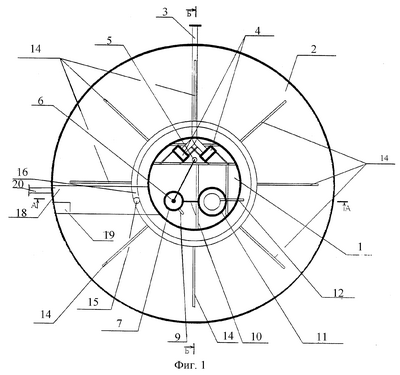 Во вторичном отстойнике 11 происходит разделение водоиловой смеси на осветленную воду и активный ил. Последний поступает на циркуляцию в приемную камеру 1, а осветленная вода поступает по патрубку 12 в блок доочистки 2 (по желанию Заказчика) или на сброс по патрубку 20.