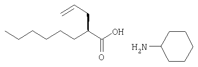 Приведенная выше таблица показывает, что оптическая чистота рассматриваемого соединения, полученного способом по настоящему изобретению, соответствует высокой оптической чистоте, а оптическая чистота соединения, полученного по способу примера сравнения, значительно снижена. В частности, оптическая чистота рассматриваемого соединения, полученного по способу примеров сравнения, ниже на 3,8% и 2,8% по сравнению с исходным веществом, а оптическая чистота рассматриваемого соединения (полученного способом по настоящему изобретению) снижена только на 0,4% и 0,6% и оптическая чистота для рассматриваемого соединения остается высокой. Как упомянуто выше, для фармации очень важно обеспечить возможно более низкое содержание побочного продукта. С этой точки зрения важным достижением является тот факт, что количество побочного продукта снижено и оптическая чистота рассматриваемого соединения остается высокой. Никак нельзя было предположить, что такие результаты можно будет получить способом по настоящему изобретению. Следовательно, по способу настоящего изобретения рассматриваемое соединение может быть получено без изомеризации и рассматриваемое соединение имеет высокую оптическую чистоту, поэтому считается, что данный способ является исключительным. Наилучший способ воплощения изобретения Далее настоящее изобретение описывается детально с помощью примеров и примеров сравнения, но указанные примеры являются исключительно иллюстративными и не могут истолковываться как ограничивающие. Стандартный пример 1 (2S)-2-(2-Пропенил)октановая кислота циклогексиламин К раствору N-(2S-(2-пропенил)октаноил)-(1S)-(-)-2,10-камфорсультама (описан в WO 99/58513) (300 г) в диметоксиэтане (DME – ДМЭ) (3 л) добавляют при -5–10°С 2-метил-2-бутен (165 г) и водный раствор перекиси водорода (30%, 177 г). К указанному раствору добавляют по каплям, в течение 30 минут при -10-0°С, раствор тетра-н-бутил-аммонийгидрохлорид (40%; 1015 г) в ДМЭ (749 мл). Полученный раствор нагревают до 0°С и перемешивают в течение 3 часов. К реакционной смеси добавляют по каплям, за 10 минут, водный раствор сульфита натрия (198,5 г/1050 мл) и смесь нагревают до комнатной температуры и перемешивают в течение 30 минут. К смеси добавляют водный раствор соляной кислоты (1,5 л/вода З л) и продукт экстрагируют трет-бутилметиловым эфиром (3 л). Органический слой промывают водным раствором щавелевой кислоты (151 г/вода 1,5 л), водой (1,5 л ×3 раза) и насыщенным водным раствором хлорида натрия (2 л) и концентрируют. К концентрированному раствору добавляют гептан (300 мл) и концентрируют снова. К остатку добавляют гептан (600 мл) и нерастворимое вещество удаляют фильтрованием. Фильтрат концентрируют и остаток растворяют в этилацетате (1 л) и циклогексиламине (70,2 г) при нагревании и оставляют стоять при температуре окружающей среды в течение ночи. Раствор охлаждают на водяной бане в течение 1 часа и выпавшие кристаллы собирают и сушат, получая указанное в заглавии соединение (145 г; выход 65%). Стандартный пример 2 (2S)-2-(2-Пропенил)октановая кислота