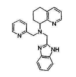 Получение (1Н-бензимидазол-2-илметил)-(5,6,7,8-тетрагидрохинолин-8-ил)амина К перемешиваемому раствору гидрата дигидрохлорида (2-аминометил)бензимидазола (5,96 г, 27,1 ммоль) в безводном MeOH (225 мл) добавляли 6,7-дигидро-5Н-хинолин-8-он (3,99 г, 27,1 ммоль) и смесь перемешивали при комнатной температуре в течение 69 часов. К полученному раствору добавляли боргидрид натрия (2,06 г, 54,2 ммоль) двумя порциями и смесь перемешивали в течение 1,5 часов. Реакционную смесь концентрировали в вакууме и разбавляли CH2Cl2 (150 мл). Органический слой промывали насыщенным водным бикарбонатом натрия (200 мл), водный слой экстрагировали CH2Cl2 (2 × 50 мл) и объединенные органические слои сушили (Na2SO4), фильтровали и концентрировали в вакууме. Очистка колоночной хроматографией на силикагеле (CH2Cl2/MeOH, 99:1, затем 98:2 и 96:4) давала промежуточный амин (3,59 г, 50%) в виде желтой пены. 1H ЯМР (CDCl3) Пример: 1