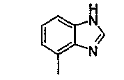 AMD9643: Получение [3-(1Н-бензимидазол-2-ил)бензил]-(1Н-бензимидазол-2-илметил)-(5,6,7,8-тетрагидрохинолин-8-ил)амина (гидробромидная соль). Получение 3-(бензимидазол-2-ил)бензилового спирта Раствор монометилового эфира изотерефталевой кислоты (1,00 г, 5,6 ммоль) в тионилхлориде (12 мл) перемешивали при 80°C в течение 3,5 часов. Растворитель удаляли при пониженном давлении, получая хлорангидрид монометилового эфира изотерефталевой кислоты (1,06 г, 97%). 1Н ЯМР (CDCl3) Раствор 2-нитроанилина (0,62 г, 4,5 ммоль) и хлорангидрида монометилового эфира изотерефталевой кислоты (1,06 г, 5,3 ммоль) в ТГФ (5,6 мл) и пиридине (1,1 мл) перемешивали в течение 2 часов при комнатной температуре. К смеси добавляли насыщенный NaHCO3 (20 мл) и экстрагировали этилацетатом (3 × 20 мл). Объединенные органические экстракты сушили (MgSO4), фильтровали, концентрировали и очищали колоночной хроматографией на силикагеле (5% MeOH/CH2Cl2), получая метиловый эфир (2-нитрофенил)изотерефталаминовой кислоты (0,70 г, 52%) в виде желтого твердого вещества. 1Н ЯМР (CDCl3) К раствору метилового эфира (2-нитрофенил)изотерефталаминовой кислоты (0,70 г, 2,3 ммоль) в ледяной уксусной кислоте (8 мл) добавляли порошок железа (ситовый состав <5 мкм, 0,35 г, 6,3 ммоль) и смесь перемешивали при кипячении с обратным холодильником в течение 1,5 часов. Смесь охлаждали, перемешивали при комнатной температуре в течение 1 часа и концентрировали при пониженном давлении. Остаток распределяли между насыщенным раствором бикарбоната натрия (20 мл) и этилацетатом (20 мл), фазы разделяли и органический слой промывали насыщенным NaHCO3 (20 мл). Органический экстракт сушили (MgSO4), фильтровали и концентрировали, получая циклизованный сложный эфир метил 3-(бензимидазол-2-ил)бензоата (0,59 г, 100%). 1Н ЯМР (CDCl3) К раствору 3-(бензимидазол-2-ил)бензоатного сложного эфира (0,20 г, 0,8 ммоль) в ТГФ (8 мл) при -78°C добавляли раствор DIBAL-H (4,0 мл, 1,0 M в ТГФ, 4,0 ммоль). Реакционную смесь оставляли нагреваться до комнатной температуры, перемешивали в течение 0,5 часа и гасили насыщенным раствором тартрата калия-натрия (15 мл). Двухфазную систему интенсивно перемешивали в течение 1 часа, фазы разделяли и органический слой сушили (MgSO4), фильтровали и концентрировали, получая 3-(бензимидазол-2-ил)бензиловый спирт (0,12 г, 67%). 1Н ЯМР (CD4OD3) Используя общую методику С, к раствору 3-(бензимидазол-2-ил)бензилового спирта (0,12 г, 0,5 ммоль) и триэтиламина (0,11 мл, 0,8 ммоль) в ТГФ (5 мл) добавляли метансульфонилхлорид (55 мкл, 0,7 ммоль) и смесь перемешивали при комнатной температуре в течение 1 часа. Полученный мезилат (0,15 г, 91%) использовали без дополнительной очистки в следующей реакции. 1Н ЯМР (CDCl3) Используя общую методику алкилирования, раствор полученного выше мезилата (0,15 г, 0,5 ммоль), N,N-диизопропилэтиламина (0,12 мл, 0,7 ммоль) и иодида калия (6 мг, 30 ммоль) в CH3CN (5 мл) подвергали взаимодействию с (1-трет-бутоксикарбонил-1Н-бензимидазол-2-илметил)-(5,6,7,8-тетрагидрохинолин-8-ил)амином (0,18 г, 0,5 ммоль) при 60°C в течение 3 часов. Очистка неочищенного вещества колоночной хроматографией на силикагеле (2% MeOH/CH2Cl2) давала целевой N-алкилированный продукт (0,17 г, 60%) в виде хлопьевидного белого твердого вещества. 1Н ЯМР (CDCl3) Используя общую методику D, превращение полученного выше вещества (50 мг) в гидробромидную соль давало AMD9575 (0,062 г) в виде бежевого твердого вещества. 1Н ЯМР (D2О) Пример: 73