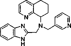 AMD9818: Получение (1Н-бензимидазол-2-илметил)пиридин-3-илметил-(5,6,7,8-тетрагидрохинолин-8-ил)амина (гидробромидная соль). По общей методике B к раствору 3-пиридинкарбоксальдегида (29 мг, 0,271 ммоль) и [1-(трет-бутоксикарбонил)-(1Н-бензимидазол-2-илметил)]-(5,6,7,8-тетрагидрохинолин-8-ил)амина (103 мг, 0,273 ммоль) в CH2Cl2 (5 мл) добавляли NaBH(OAc)3 (98 мг, 0,462 ммоль) и реакционную смесь перемешивали в течение ночи. Очистка неочищенного продукта радиальной хроматографией (1 мм ТСХ пластина, 80:1:1 CH2Cl2:CH3OH:NH4OH) давала целевое свободное основание (64 мг, 50 %). По общей методике D превращение полученного выше амина (64 мг) в гидробромидную соль давало AMD9818 (69 мг, 78%). 1Н ЯМР (D2О) Пример: 84