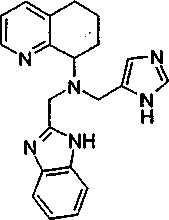 AMD9875: Получение (1Н-бензимидазол-2-илметил)-(3Н-имидазол-4-илметил)-(5,6,7,8-тетрагидрохинолин-8-ил)амина (гидробромидная соль). Используя общую методику B, взаимодействие 4(5)-имидазолкарбоксальдегида (0,055 г, 5 0,57 ммоль) и (1-трет-бутоксикарбонил-1Н-бензимидазол-2-илметил)-(5,6,7,8-тетрагидрохинолин-8-ил)амина (0,164 г, 0,43 ммоль) с NaBH(OAc)3 (0,154 г, 0,73 ммоль) в CH2Cl2 (4 мл) в течение 24 часов с последующей очисткой неочищенного вещества радиальной хроматографией на силикагеле (2 мм пластина, 20:1:1 CH2Cl2-CH3OH-NH4OH) давало 0,099 г (50%) целевого третичного амина в виде белого твердого вещества. Используя общую методику D, превращение белого твердого вещества (99 мг) в гидробромидную соль с одновременным удалением BOC-защитной группы, с последующим переосаждением промежуточного твердого вещества из смеси метанол/эфир, давало AMD9875 (97 мг) в виде белого твердого вещества. 1Н ЯМР (D2О) Пример: 87