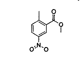 Раствор 2-метил-5-нитробензойной кислоты (1,51 г, 8,34 ммоль) и H2SO4 (каталитическое количество) в MeOH (20 мл) кипятили с обратным холодильником в течение 17 часов, затем концентрировали в вакууме. Остаток растворяли в CH2Cl2 (40 мл), промывали насыщенным раствором NaHCO3 (водн.) (30 мл), затем сушили (MgSO4) и концентрировали в вакууме, получая желтые кристаллы (1,62 г, 99%). 1H ЯМР (CDCl3) Получение метилового эфира 5-амино-2-метилбензойной кислоты