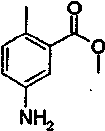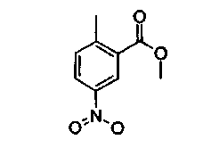 Раствор 2-метил-5-нитробензойной кислоты (1,91 г, 10,6 ммоль) и H2SO4 (каталитическое количество) в MeOH (25 мл) кипятили с обратным холодильником в течение 16 часов, затем концентрировали в вакууме. Остаток растворяли в CH2Cl2 (50 мл), промывали насыщенным NaHCO3 (водн.) (2 x 40 мл), затем сушили (MgSO4), фильтровали и концентрировали в вакууме, получая желтые кристаллы (1,50 г, 73%). 1Н ЯМР (CDCl3) Получение метилового эфира 5-амино-2-метилбензойной кислоты