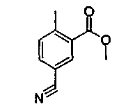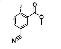 Раствор метилового эфира 2-метил-5-нитробензойной кислоты (1,50 г, 7,8 ммоль) в смеси 4:1 MeOH/EtOAc (20 мл) встряхивали при комнатной температуре с суспензией 10% Pd/C (175 мг, 0,17 ммоль) в атмосфере водорода при 35 фн/дюйм2 (241 кПа) в течение 17 часов. Катализатор удаляли фильтрованием через целит и фильтрат концентрировали в вакууме, получая бледно-желтое масло (1,29 г, 99%). 1Н ЯМР (CDCl3) Получение метилового эфира 5-циано-2-метилбензойной кислоты