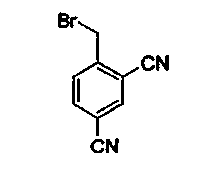 Получение 4-бромметилизофталонитрила К перемешиваемому раствору 4-метилизофталонитрила (полученного, как описано Klement, I.; Lennick, K.; Tucker, C.E.; Knochel, P. Tetrahedron Lett. 1993, 34, 4623-4626) (500 мг, 3,52 ммоль) в CCl4 (4 мл) добавляли твердый N-бромсукцинимид (1,25 г, 7,0 ммоль), затем бензоилпероксид (8 мг, 0,04 ммоль). Полученную смесь кипятили с обратным холодильником в течение 8 часов, после чего охлаждали до комнатной температуры и концентрировали в вакууме. Неочищенное вещество очищали флэш-хроматографией (силикагель, 4:1 гексаны/EtOAc), получая 457 мг смеси 4-метилизофталонитрила и 4-бромметилизофталонитрила в молярном соотношении 3:1 соответственно. 4-Бромметилизофталонитрил имел 1Н ЯМР (CDCl3)