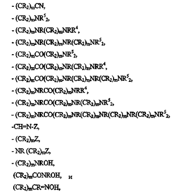 и те, в которых Y включает гуанидино, или NHNHR, или амидино; особенно где (CR2)m представляет СН2, СН2СН2 или СН2СН2СН2, или где m равен 0, и те, в которых R4 или R5 представляет Н или низший алкил, алкенил или водород, или те, в которых оба R5 являются одинаковыми. Особенно предпочтительными являются -CH2NH2, CH2CH2NH2, -CH2NMe2, -CH2CH2NMe2, -CONH2, -CONMe2 и тому подобное. Предпочтительные Z представляют необязательно замещенные остатки бензола, оксазола, имидазола, тиазола, бензимидазола, бензтиазола, бензоксазола, индола, тиофена, тетразина, пиримидина, пиридина и тому подобное. Новые соединения формулы (1) по настоящему изобретению могут быть включены в фармацевтические композиции, которые могут вводиться местно; подкожно, включая внутривенное введение; перорально и с помощью других стандартных путей фармацевтического введения субъектам-млекопитающим, как определено в соответствии с обычной клинической практикой. После того как изобретение было описано в общих чертах, то же самое будет более легко доступно со ссылкой на следующие примеры, которые представлены в качестве иллюстрации и не предназначены для ограничения изобретения, если точно не определено другое. Экспериментальная часть Промежуточные соединения 8-гидрокси-5,6,7,8-тетрагидрохинолин и 8-амино-5,6,7,8-тетрагидрохинолин получены в соответствии с методиками, описанными Bridger et el., в заявке на патент США USSN 09/535314, включенной в данное описание в качестве ссылки. Промежуточное соединение N’-(1Н-бензимидазол-2-илметил)-N’-(5,6,7,8-тетрагидро-8-хинолинил)-1,4-бензолдиметанамин получен, как описано Bridger et el., в заявках на патент США USSN 60/232891 и USSN 60/234510, включенных в данное описание в качестве ссылки. Промежуточное соединение 1-N-трет-бутоксикарбонил-2-хлорметилбензимидазол получен, как описано An H.; Wang T.; Mohan V.; Griffey R.H.; Cook P.D. Tetrahedron, 1998, 54, 3999-4012. Общие методики Общая методика N-алкилирования (1-трет-бутоксикарбонил-1Н-бензимидазол-2-илметил)-(5,6,7,8-тетрагидрохинолин-8-ил)амина мезилатами или алкилхлоридами К раствору (1-трет-бутоксикарбонил-1Н-бензимидазол-2-илметил)-(5,6,7,8-тетрагидрохинолин-8-ил)амина (или амина) (1-1,4 эквивалента), N,N-диизопропилэтиламина (или К2СО3) (1,5-2 эквивалента) и KI (0,05-0,16 эквивалента) в ацетонитриле (концентрация 0,1-0,2 М) добавляли мезилат или алкилхлорид (такой как 1-N-трет-бутоксикарбонил-2-хлорметилбензимидазол) (1-1,4 эквивалента) и смесь перемешивали при 50-70°С в течение 3-25 часов, контроль осуществляли аналитической тонкослойной хроматографией. Реакционную смесь охлаждали, разбавляли CH2Cl2 (10 мл/ммоль амина) и выливали либо в насыщенный водный раствор NaHCO3, либо в насыщенный раствор соли (10 мл/ммоль спирта). Фазы разделяли и водную фазу экстрагировали CH2Cl2 (3 × 10 мл/ммоль амина). Объединенные органические фазы сушили (Na2SO4 или MgSO4) и концентрировали при пониженном давлении. Неочищенное вещество очищали хроматографией, получая целевой N-алкилированный продукт. Общая методика А: Прямое восстановительное аминирование с использованием NaBH3CN К перемешиваемому раствору амина (1 эквивалент) в безводном метаноле (концентрация 0,1 М) при комнатной температуре добавляли в виде одной порции карбонильное соединение (12 эквивалента). После растворения карбонильного соединения (5 минут) добавляли в виде одной порции NaBH3CN (2-4 эквивалента) и полученный раствор перемешивали при комнатной температуре. Растворитель удаляли при пониженном давл