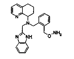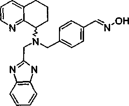 AMD9685: Получение оксима 4-{[(1Н-бензимидазол-2-илметил)-(5,6,7,8-тетрагидрохинолин-8-ил)амино]метил}бензальдегида. К перемешиваемому раствору N’-(1Н-бензимидазол-2-илметил)-N’-(5,6,7,8-тетрагидро-8-хинолинил)-l,4-бензолдиметанамина (200 мг, 0,50 ммоль) в MeOH (5 мл) добавляли твердый дигидрат вольфрамата натрия (332 мг, 1,0 ммоль) с последующим добавлением 35 мас.% водного раствора пероксида водорода (2,9 мл, 30 ммоль). Полученную суспензию перемешивали 3 часа, затем добавляли насыщенный водный бикарбонат натрия (5 мл). Фазы разделяли и водный слой экстрагировали CH2Cl2 (3×10 мл), затем объединенные органические экстракты промывали один раз насыщенным раствором соли (10 мл), сушили (MgSO4) и концентрировали в вакууме. Очистка неочищенного вещества флэш-хроматографией (силикагель, 75:1:1 CH2Cl2/MeOH/NH4OH) давала указанное в заголовке соединение (130 мг, 63%) в виде белого твердого вещества. 1H ЯМР (CDCl3) Пример: 58