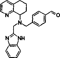 AMD9882: Получение 4-{[(1Н-бензимидазол-2-илметил)-(5,6,7,8-тетрагидрохинолин-8-ил)амино]метил}бензальдегида. К перемешиваемому раствору полученного выше спирта, 4-{[(1Н-бензимидазол-2-илметил)-(5,6,7,8-тетрагидрохинолин-8-ил)амино]метил}бензилового спирта (AMD9717), (9,29 г) в безводном CH2Cl2 (200 мл) добавляли MnO2 (20,3 г, 233 ммоль) и смесь перемешивали в течение 4 часов при комнатной температуре. Затем добавляли дополнительную порцию MnO2 (8,5 г, 97,8 ммоль) и смесь перемешивали в течение ночи при комнатной температуре. Реакционную смесь фильтровали через слой целита, осадок на фильтре промывали CHCl3 и полученный фильтрат концентрировали в вакууме. Очистка неочищенного продукта колоночной хроматографией на силикагеле (CH2Cl2/MeOH, 97:3 затем 96:4) давала альдегид (5,08 г, 34%, 5 стадий) в виде бледно-желтого твердого вещества. 1Н ЯМР (CDCl3) Пример: 61