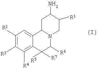 где R1 означает (низш.)алкил, фенил, фенил, моно-, ди- или тризамещенный (низш.)алкилом или (низш.)алкокси, пирролил, пиридинил или (низш.)алкил, замещенный циклоалкилом или фенилом, R2, R3 и R4 каждый независимо означает водород, галоген, гидрокси, (низш.)алкокси или (низш.)алкенил, причем (низш.)алкокси и (низш.)алкенил необязательно замещены группами (низш.)алкоксикарбонил, фенил, фенил, замещенный ди(низш.)алкиламином или цианогруппой, замещенный (низш.)алкилом тиазолил, пиридинил или морфолино, R5 означает водород, (низш.)алкил или фенил, необязательно замещенный галогеном, (низш.)алкоксигруппой или гидрокси, R6 означает водород, (низш.)алкил или гидрокси(низш.)алкил, или R5 и R6 вместе с атомами углерода, к которым они присоединены, образуют 6-членный насыщенный карбоциклический цикл, представляющий собой фенантридин, R7 означает водород или (низш.)алкил, и их фармацевтически приемлемые соли, за исключением дигидрохлорида рац-3 дигидрохлорида рац-3 3-изобутил-9,10-диметокси-1,3,4,6,7,11b-гексагидро-2Н-пиридо[2,1-а]изохинолин-2-иламина, дигидрохлорида рац-3 дигидрохлорида рац-3 3-этил-9,10-диметокси-1,3,4,6,7,11b-гексагидро-2Н-пиридо[2,1-а]изохинолин-2-иламина. 2. Соединения по п.1, где R1 означает (низш.)алкил, фенил, фенил, моно-, ди- или тризамещенный (низш.)алкилом или (низш.)алкокси, или (низш.)алкил, замещенный циклоалкилом или фенилом, R2, R3 и R4 каждый независимо означает водород, галоген, гидрокси, (низш.)алкокси или (низш.)алкенил, причем (низш.)алкокси и (низш.)алкенил необязательно замещены группами (низш.)алкоксикарбонил, фенил, фенил, замещенный ди(низш.)алкиламином или цианогруппой, замещенный (низш.)алкилом тиазолил, пиридинил или морфолино, R5 означает водород, (низш.)алкил, фенил, необязательно замещенный галогеном, (низш.)алкоксигруппой или гидрокси, R6 означает водород, (низш.)алкил, или R5 и R6 вместе с атомами углерода, к которым они присоединены, образуют 6-членный насыщенный карбоциклический цикл, представляющий собой фенантридин. 3. Соединения по п.1, где R1 означает (низш.)алкил, фенил или, циклоалкил(низш.)алкил. 4. Соединения по п.1, где R1 означает (низш.)алкил или (низш.)алкил, замещенный циклоалкилом. 5. Соединения по п.1, где R1 означает пирролил и пиридинил. 6. Соединения по п.1, где R2, R3 и R4 каждый независимо означает водород, гидрокси, (низш.)алкокси или (низш.)алкокси, замещенный группами фенил, фенил, замещенный ди(низш.)алкиламином или цианогруппой, замещенный (низш.)алкилом тиазолил, пиридинил или морфолино, или (низш.)алкоксикарбонил. 7. Соединения по п.1, где R2, R3 и R4 каждый независимо означает (низш.)алкокси, замещенный фенилом или фенилом, замещенным группами ди(низш.)алкиламино или циано. 8. Соединения по п.1, где R2 означает (низш.)алкокси. 9. Соединения по п.1, где R3 означает (низш.)алкокси, водород, гидрокси или (низш.)алкокси, замещенный группами фенил, фенил, замещенный ди(низш.)алкиламином или цианогруппой, замещенный (низш.)алкилом тиазолил, пиридинил или морфолино, или (низш.)алкоксикарбонил. 10. Соединения по п.1, где R3 означает (низш.)алкокси, водород или гидрокси. 11. Соединения по п.1, где R4 означает (низш.)алкокси, водород или гидрокси. 12. Соединения по п.1, где R5 и R6 означают водород или вместе с атомами углерода, к которым они присоединены, образуют шестичленный насыщенный карбоциклический цикл, представляющим собой фенантридин. 13. Соединения по п.1, выбранные из группы, включающей рац