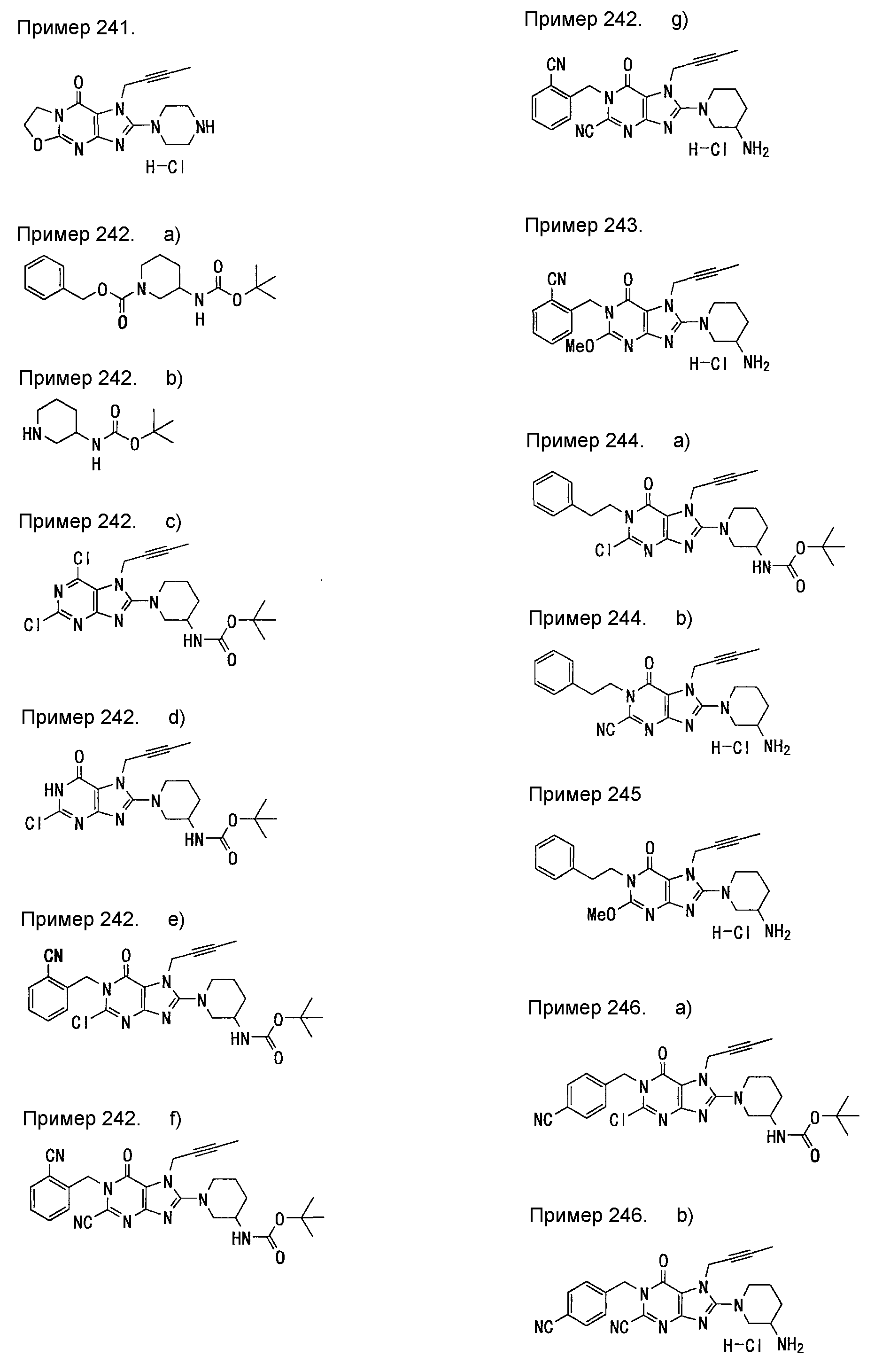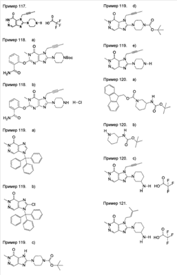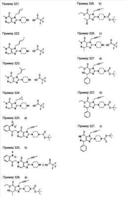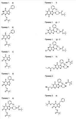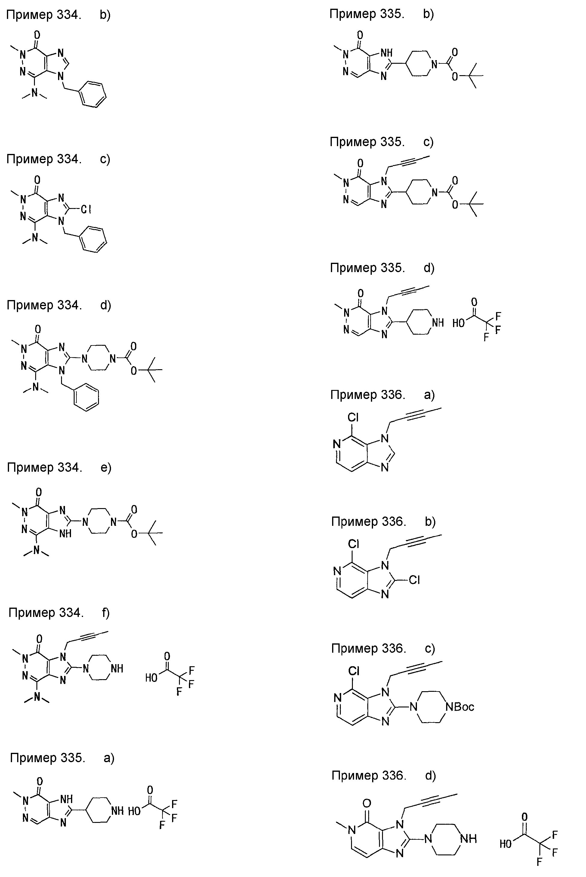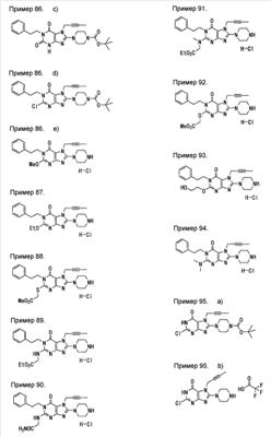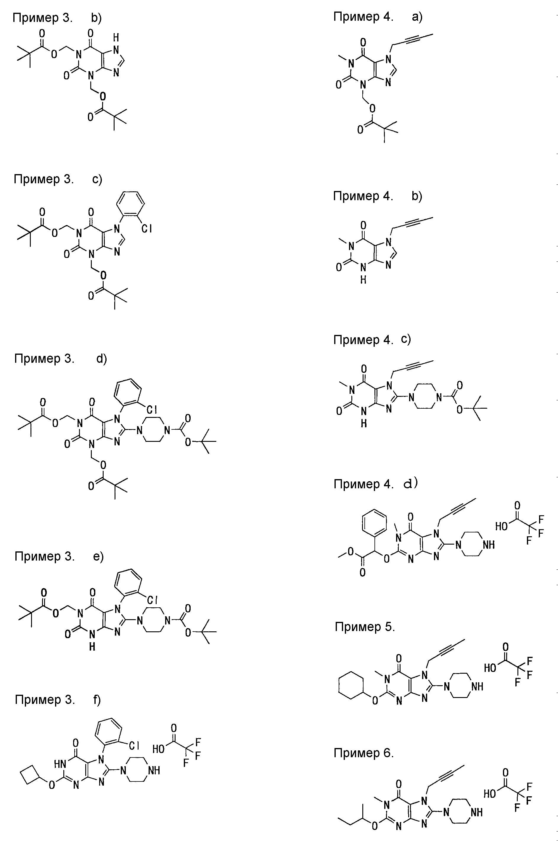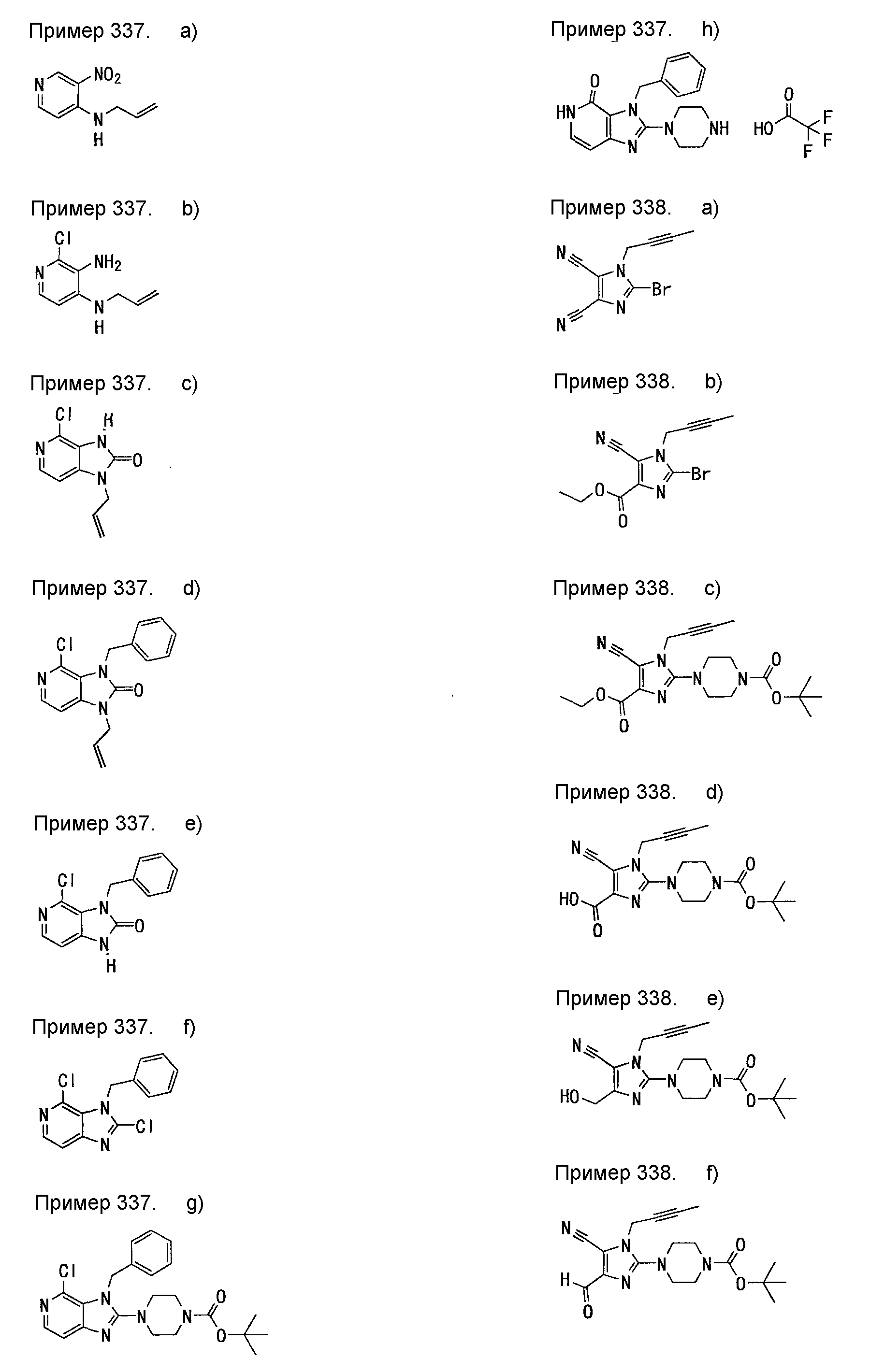Структурные формулы для соединений в описанных выше примерах получения и в примерах, показаны далее.