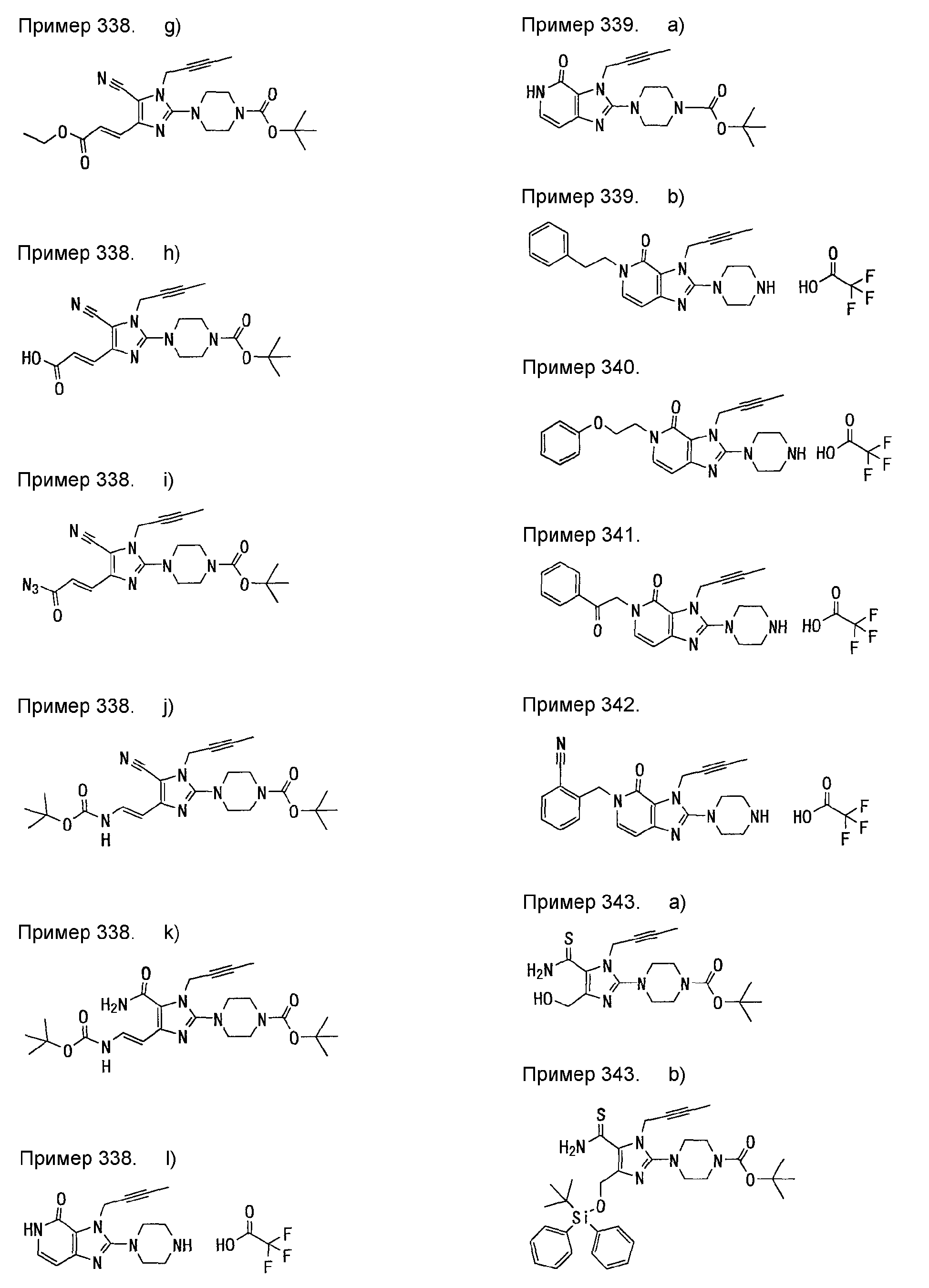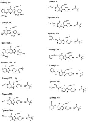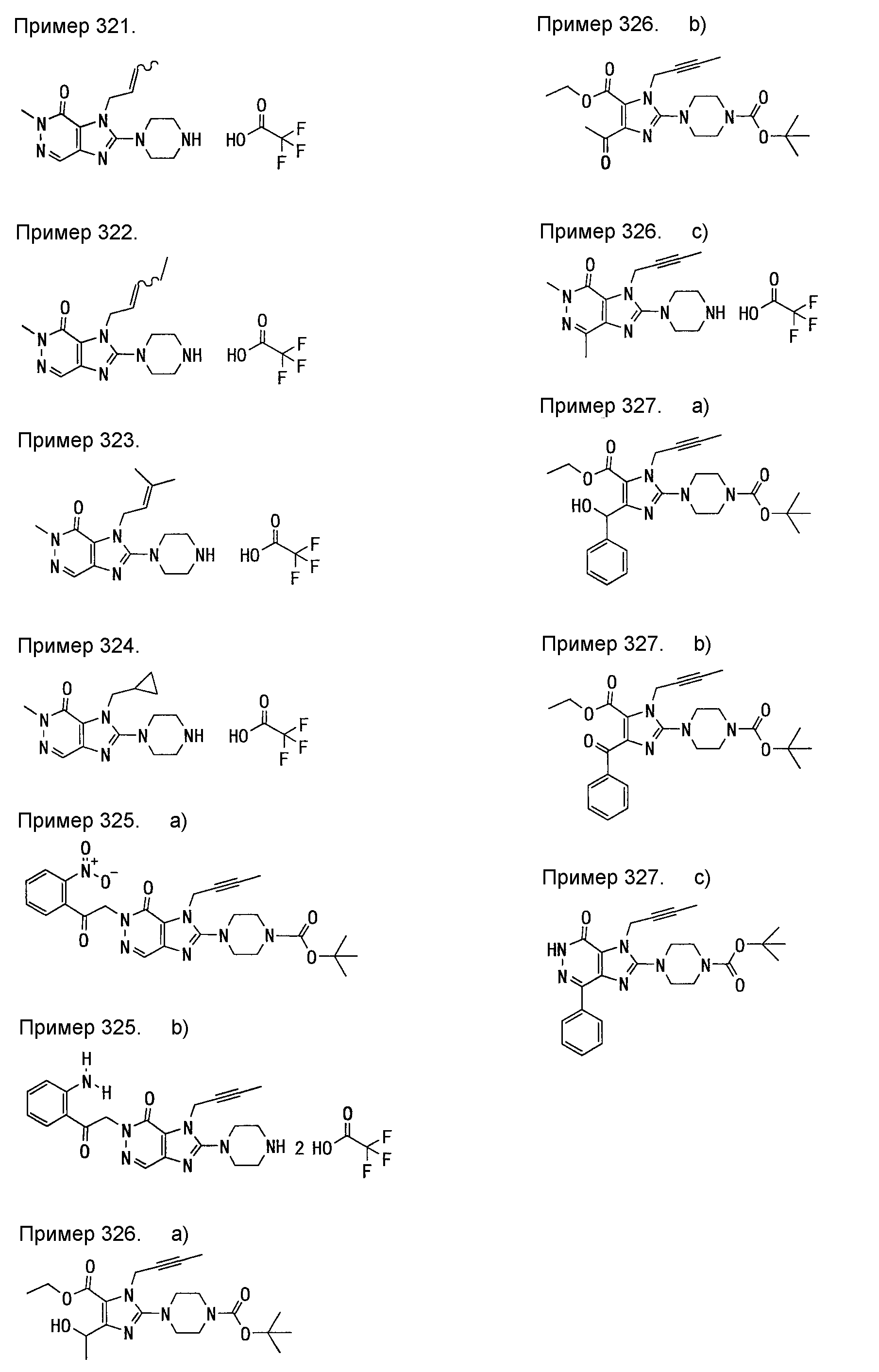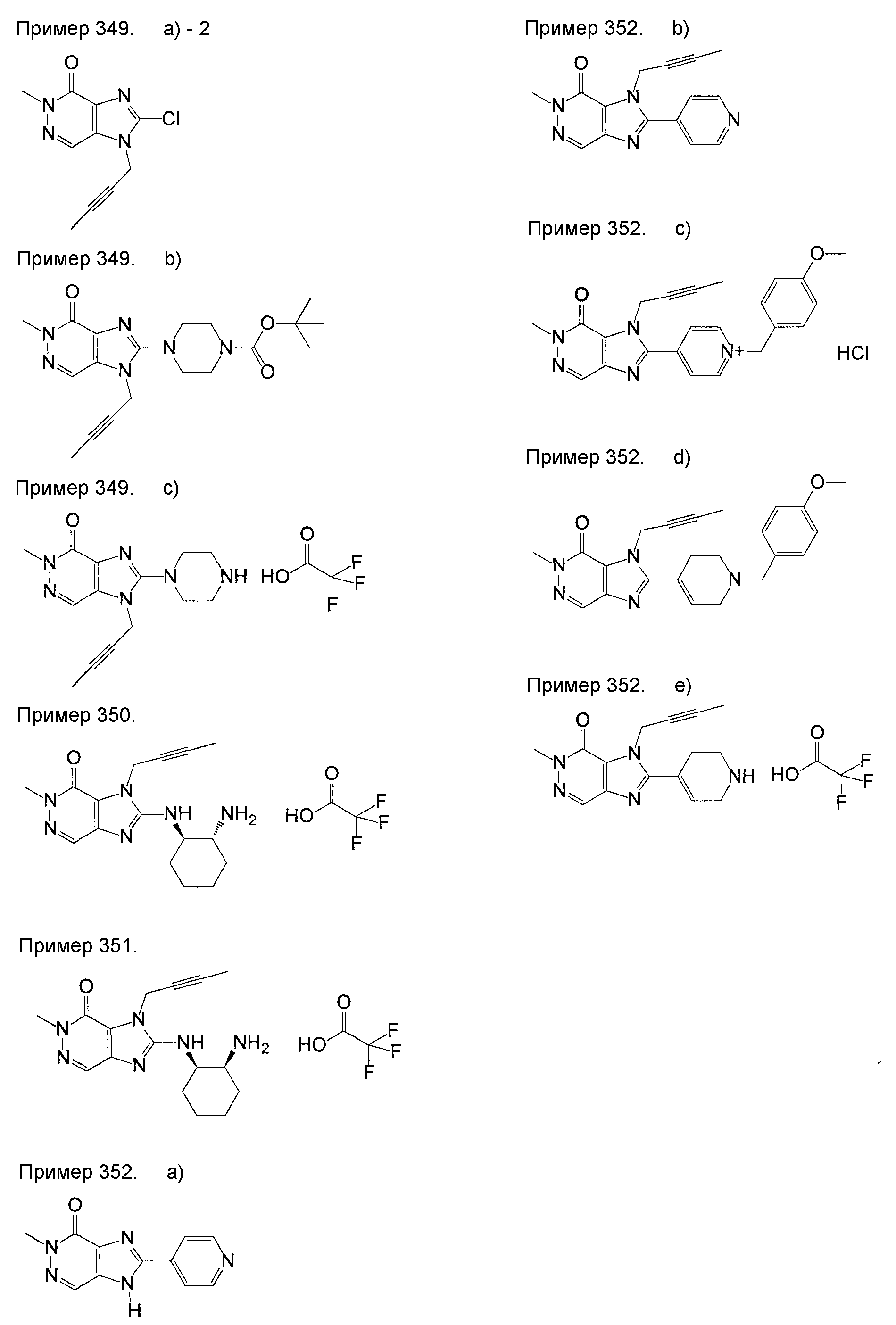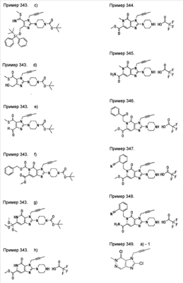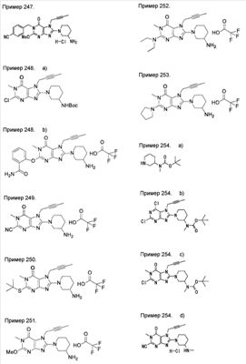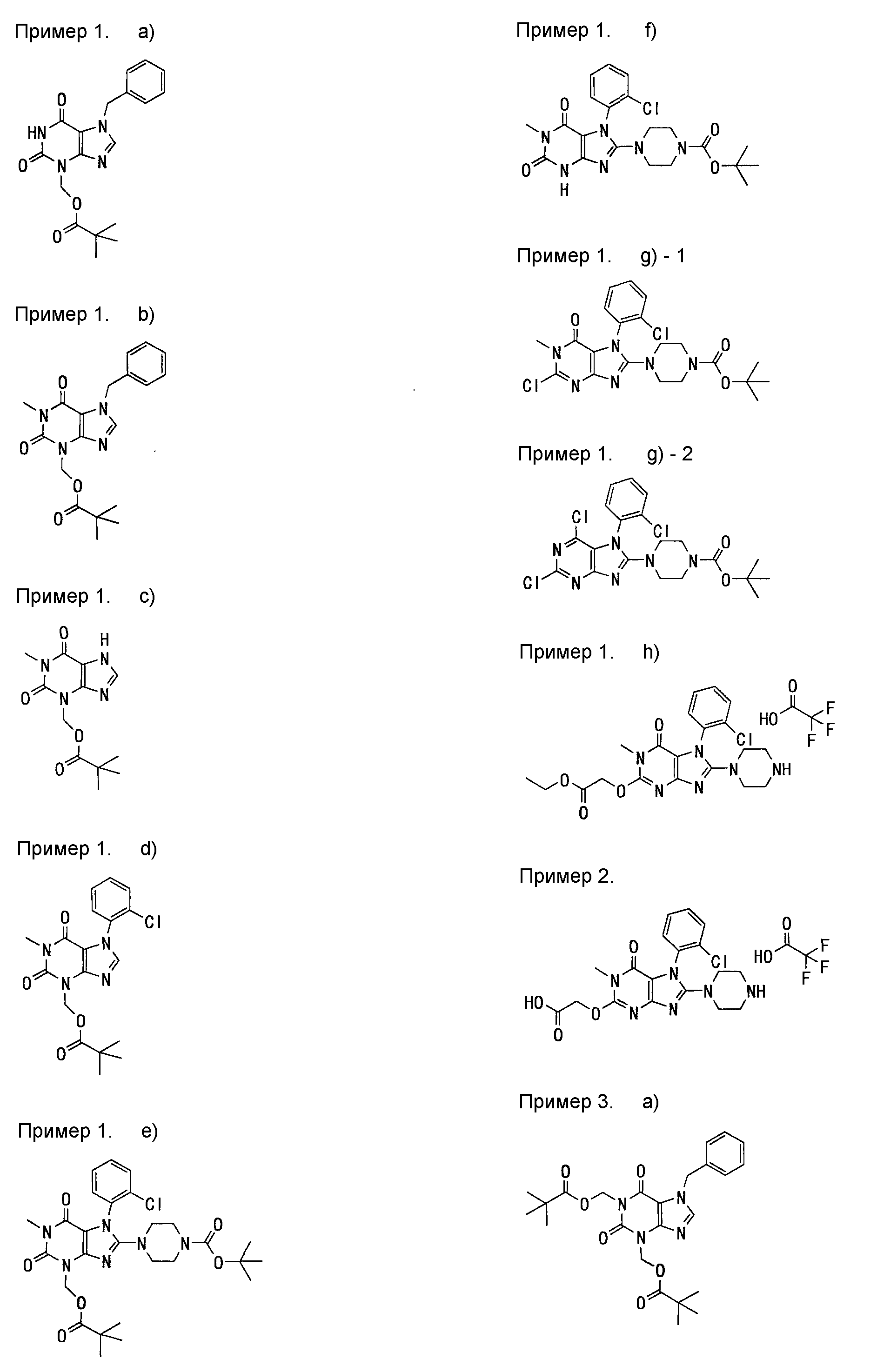 Структурные формулы для соединений в описанных выше примерах получения и в примерах, показаны далее.